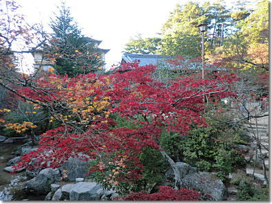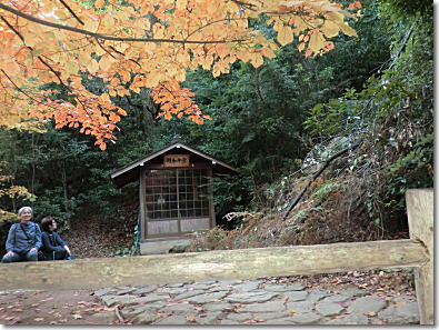 閼伽井堂と紅葉の前で休憩する老夫婦 14:42 |