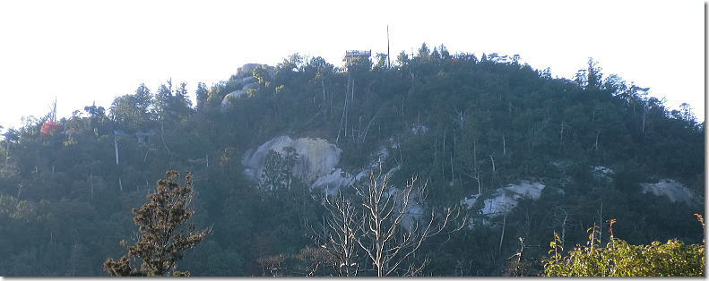 木々の間から山頂展望台を望む 14:38 |