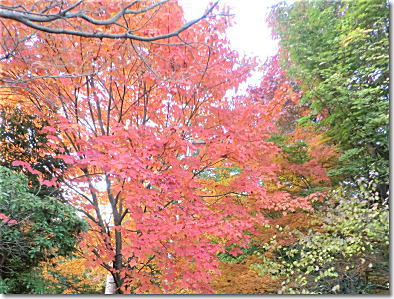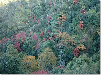 ロープウェイから紅葉した原始林を 15:40 |