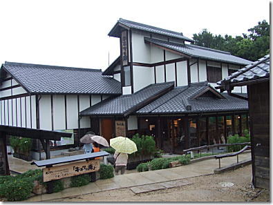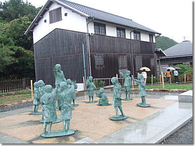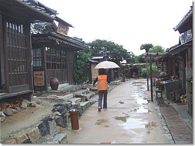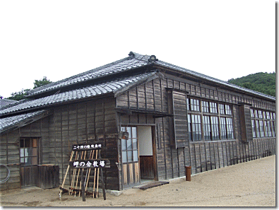 | 昭和62年田中裕子さん主演で製作された「二十四の瞳」のオープンセットを壊されるのを惜しんだ町の人々が保存した施設。昭和初期を模した日用雑貨の店や漁師の家々が並んでいる通り、撮影の中心であった分校などをぶらぶら・・・雨は止みそうにないです。 |