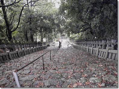 | 最後の登りです。眼の前に笠ガ滝寺が 14:04 |