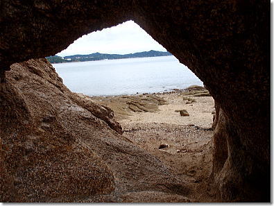 「願い事が叶う」という六角形のくぐり岩穴がある。