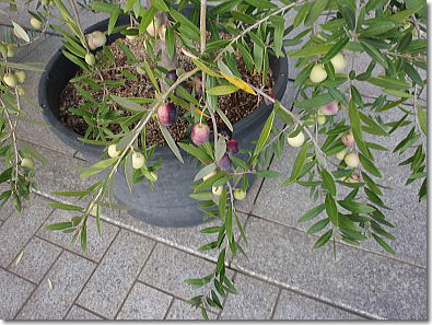 サン・オリーブ温泉玄関前の色づいたオリーブ