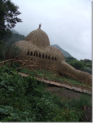 瀬戸内海に浮かぶ島々の自然 現代アートの祭典「瀬戸内国際芸術祭2010」(台湾出身の王文志さん作)肥土山・中山千枚田・・美しい棚田風景の中に突如、竹で編んだ巨大ドーム「小豆島の家」農村歌舞伎が盛んな地区で、中央に舞台を設け円形劇場がある。