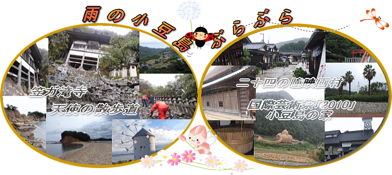 2010年9月23日、小豆島へ行ってきました。 ・・・ずーっと晴天続きだったのに、よりにとって私達が行く日は全国的に雨の予報。フェリーを予約していたので決行です。