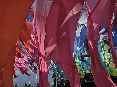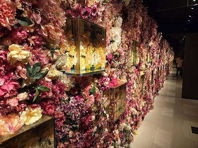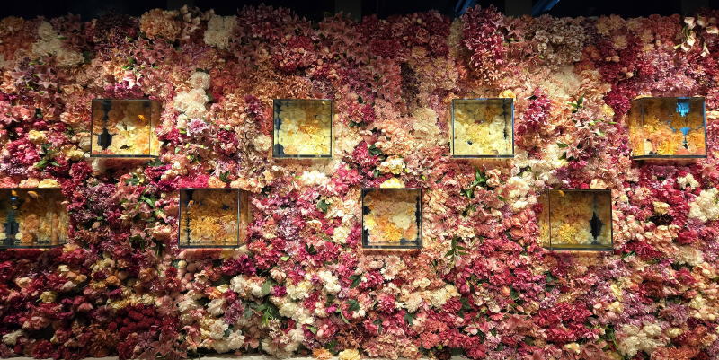 | 壁一面に咲く誇る花と、その上を優雅に泳ぐ金魚との不思議な世界を楽しむことが出来ます |