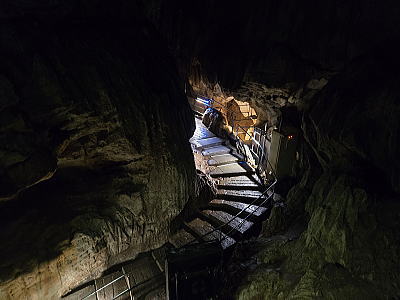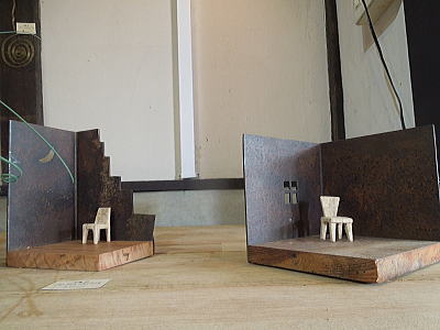 中の間から二階への階段は、狭い空間を有効に使おうと