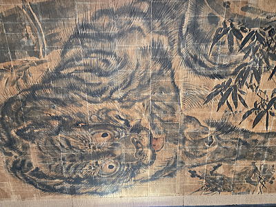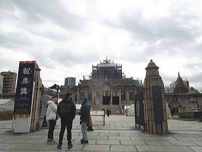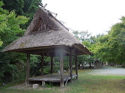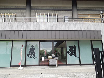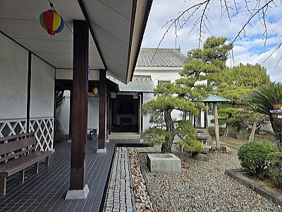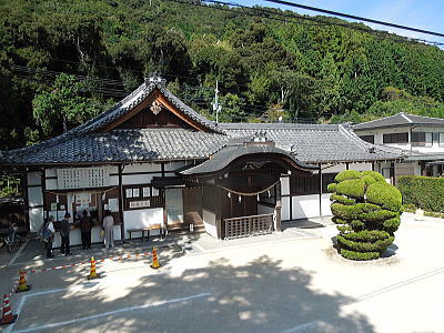 | 蚊帳と扁額が掲げられた立派な建物 |