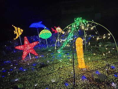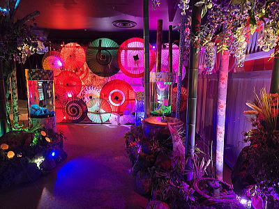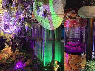 | 和傘とアクアリウムの光が魅せる光景は圧巻です |