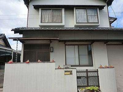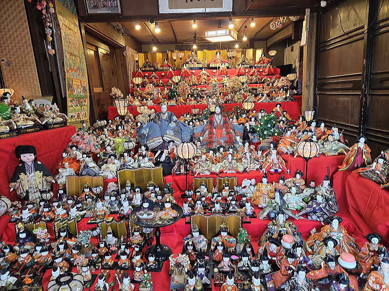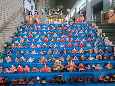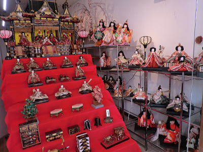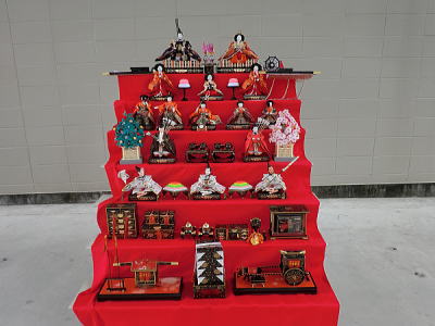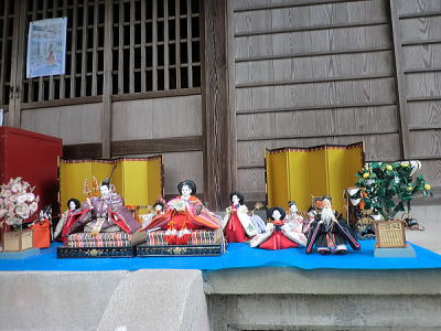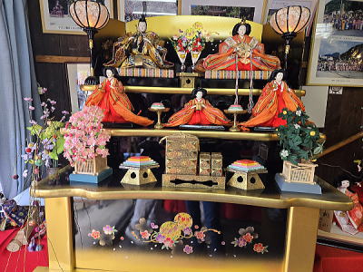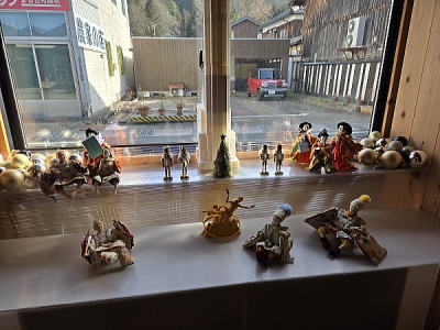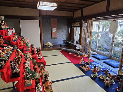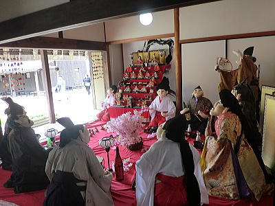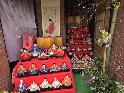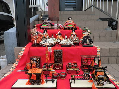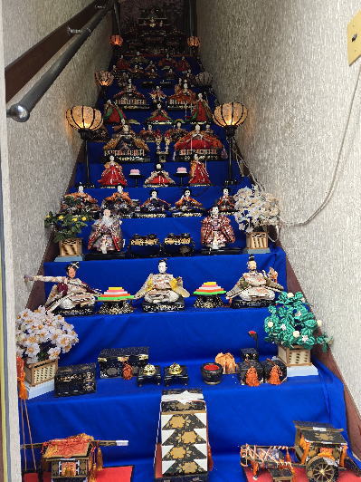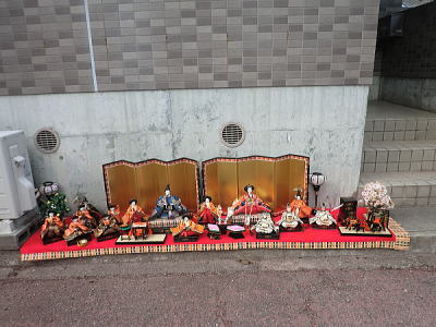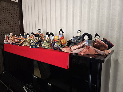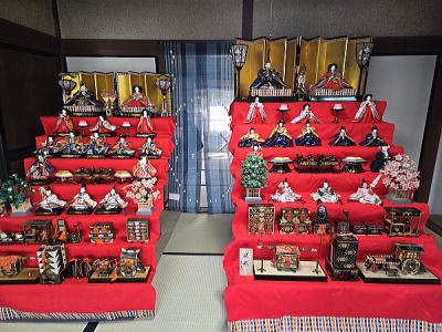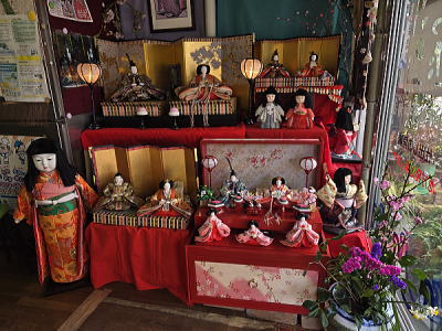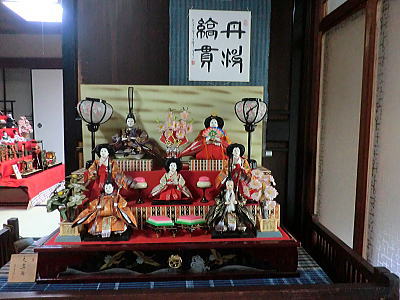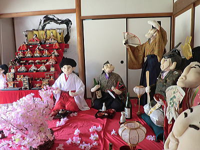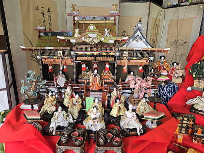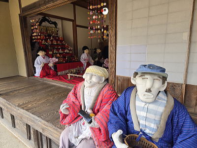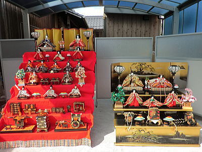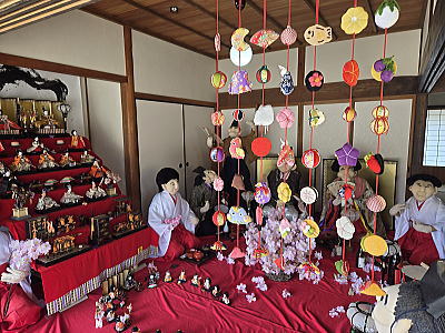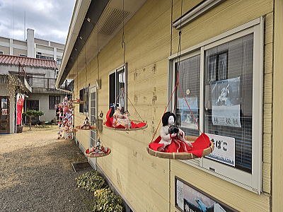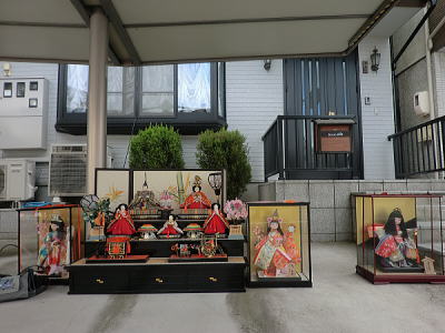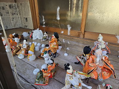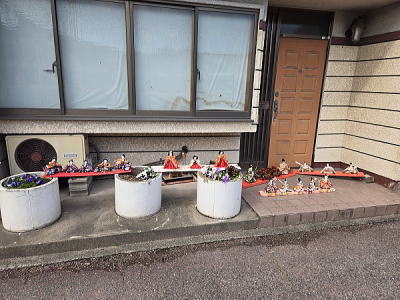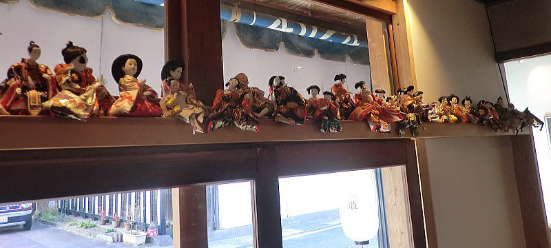 | 玄関上に一列に並ぶお雛さまがお見送りしてくれました |