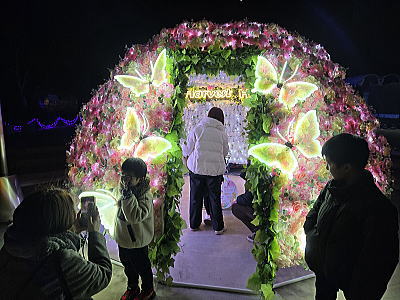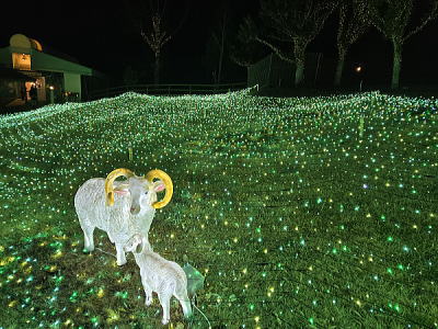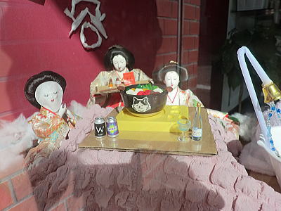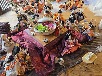 | 麓ではぼたん鍋を囲む人形 |