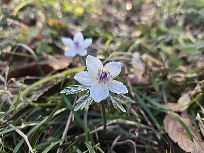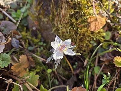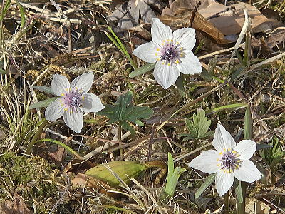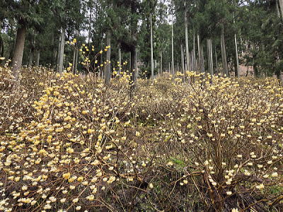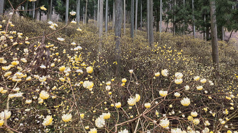 キンポウゲの小球根植物で、雑木林や山すその、半日陰のところに群生し、節分の頃に直径2㎝程の可憐な花を一面に咲かせます。