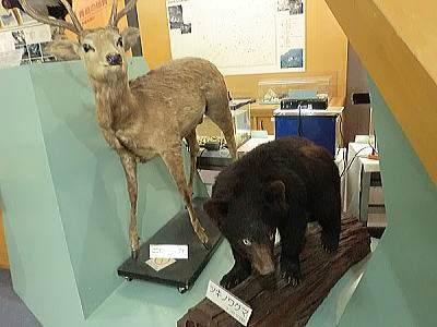 | 日本鹿・ツキノワグマのはく製も展示 |
