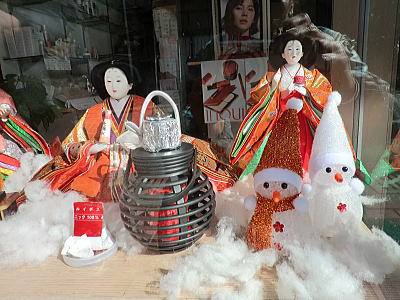 センバヤ(元薬局)窓際のお雛さま |