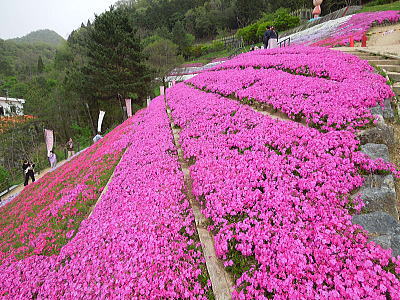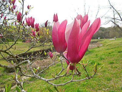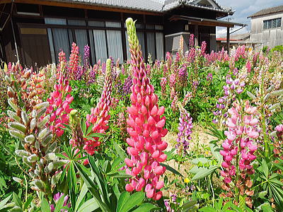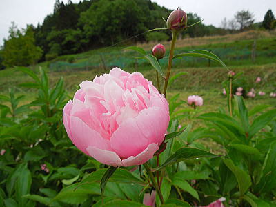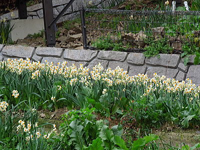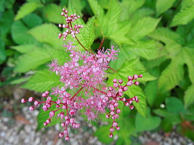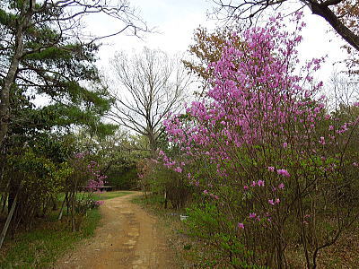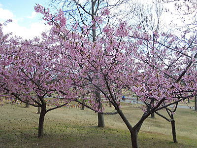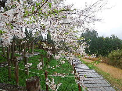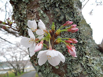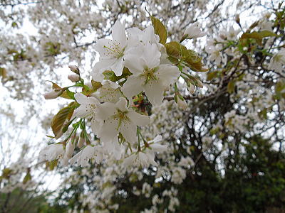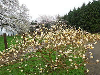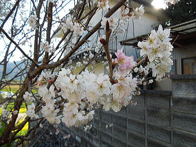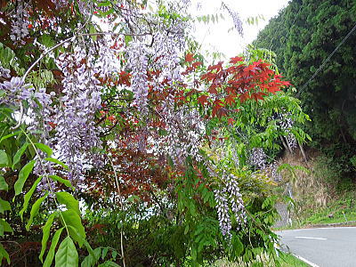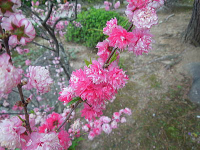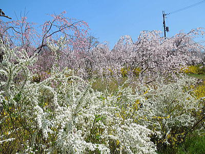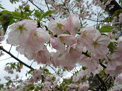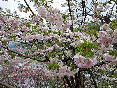| 新緑に混じって八重桜がちらほらと・・・ |