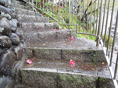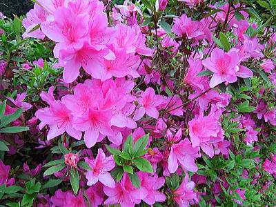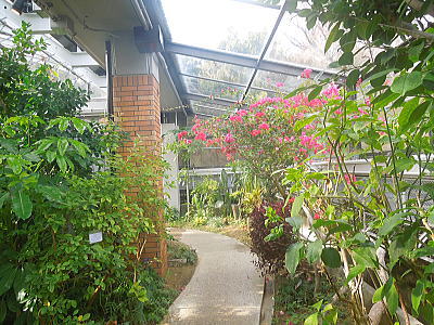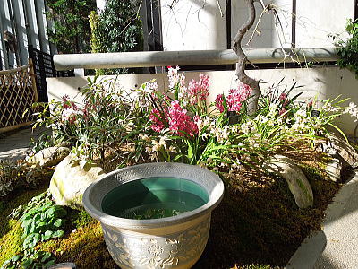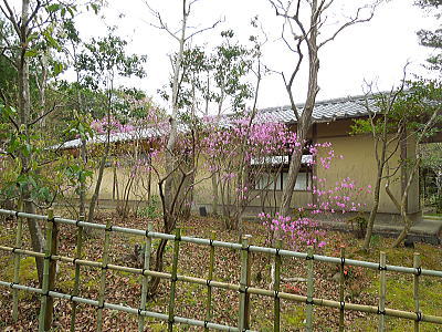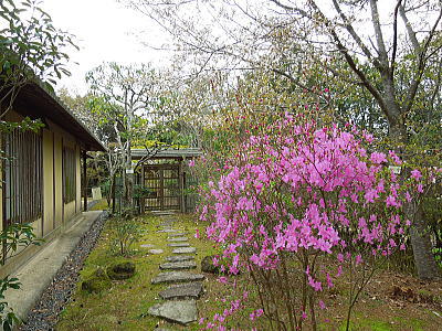 | 渡り廊下から・・日陰つつじが咲いています |