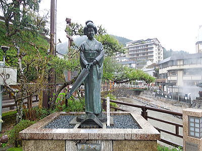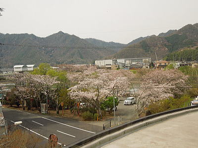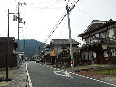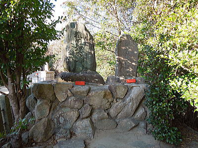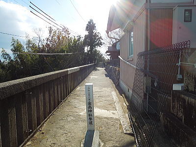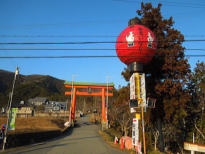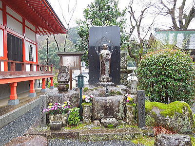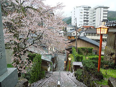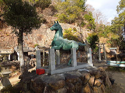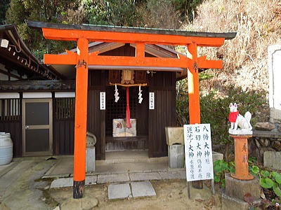 ならの川を背に、岩本神社 |