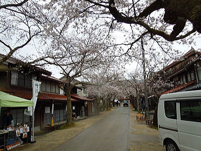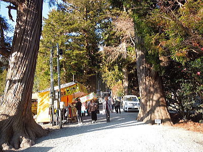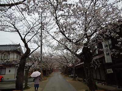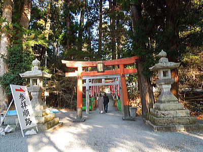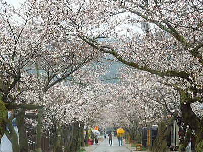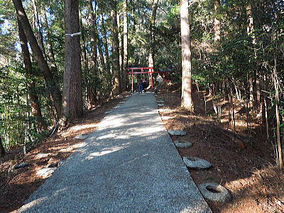 | 一の鳥居の先に斎王桜が・・・ |