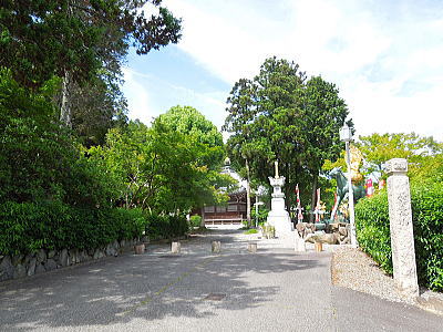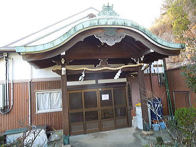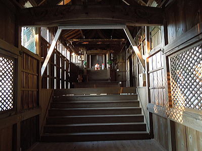 正面に1間の階段付き向拝を持ち、あがると広縁になる。 |