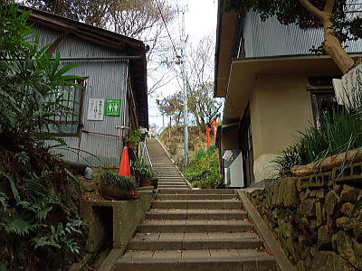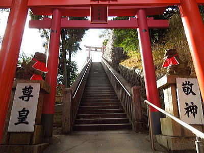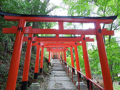 赤い鳥居が続く石段を登って行きます |