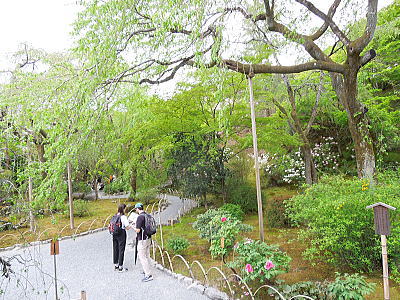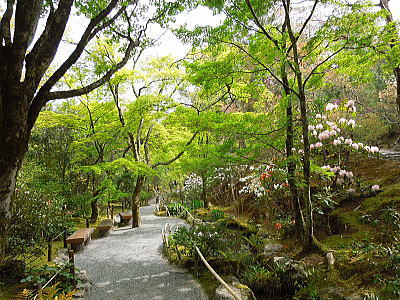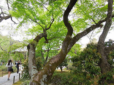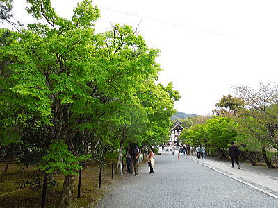 | 天龍寺本堂への参道は新緑 |