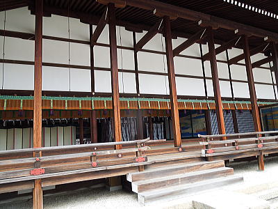 白壁に丹塗りの柱が鮮やかな回廊に囲まれた紫宸殿は、