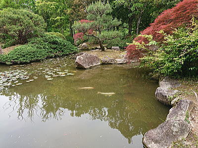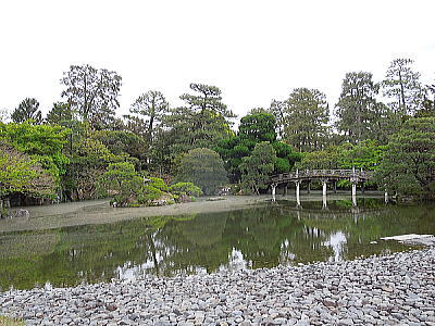 ちなみに、庭を形作る橋や灯籠、庭石などの多くは、天皇への献上品が使われているそうです。 |