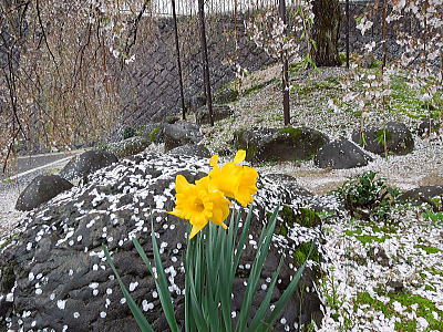 | 風に吹かれて花びらが舞っていました |