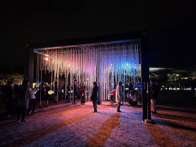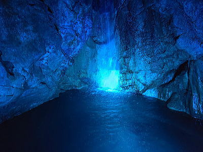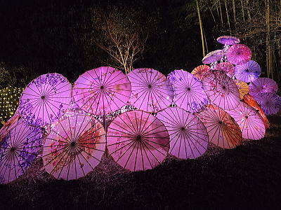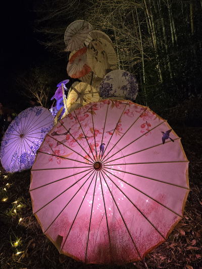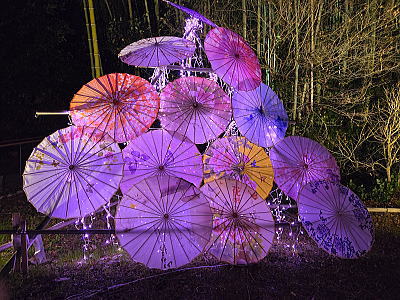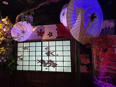| 和傘とアクアリウムの光が魅せる光景は圧巻です |