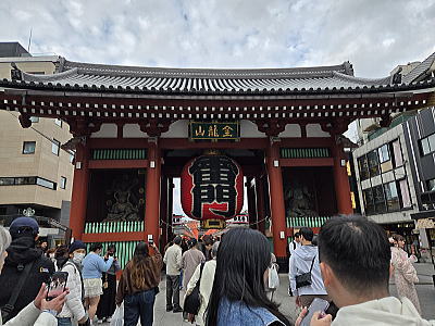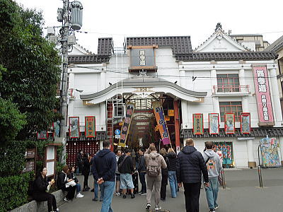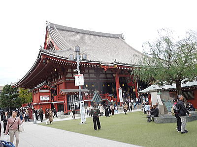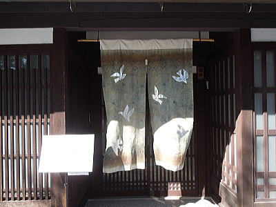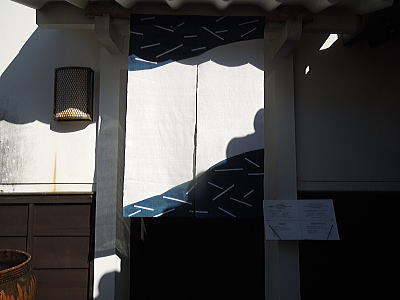 | 蚊帳と扁額が掲げられた立派な建物 |