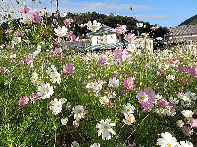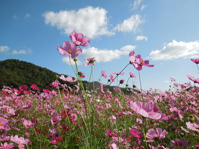 コスモスの時期には少し早いですが一輪二輪は咲いていると思って