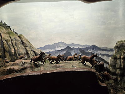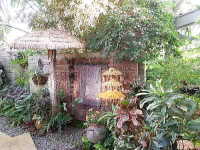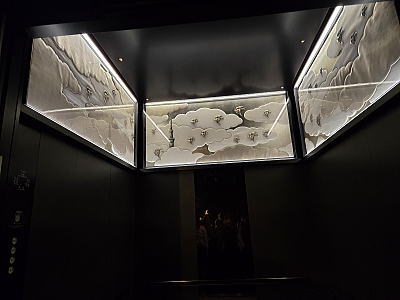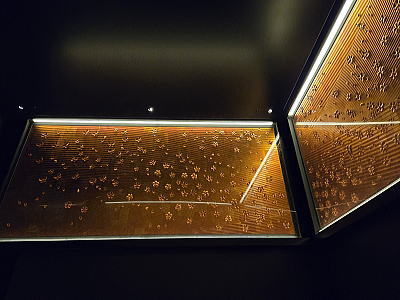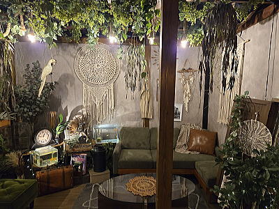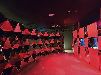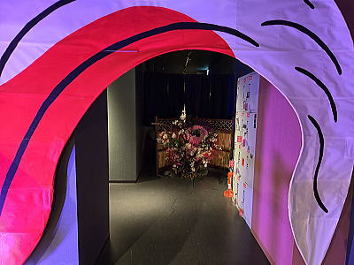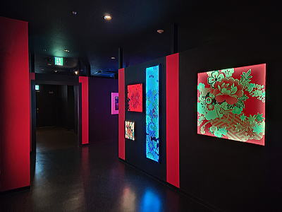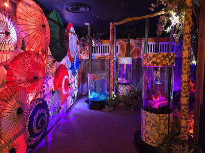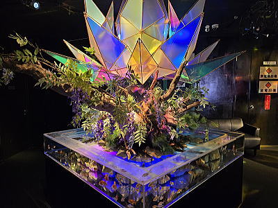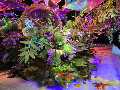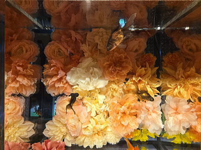 | 壁一面に咲く誇る花と、その上を優雅に泳ぐ金魚との不思議な世界を楽しむことが出来ます |