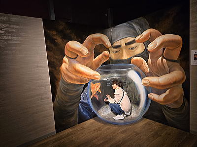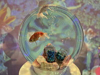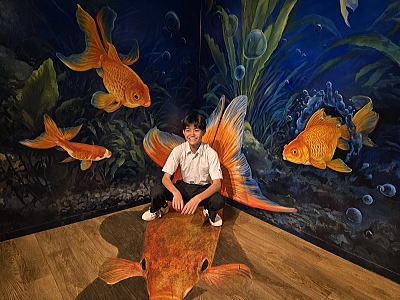 | 金魚に乗れたり、金魚鉢に入ったり、不思議な写真が楽しめるトリックアート |