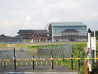 踏切前から第一次大極殿と第一次大極殿院南門、