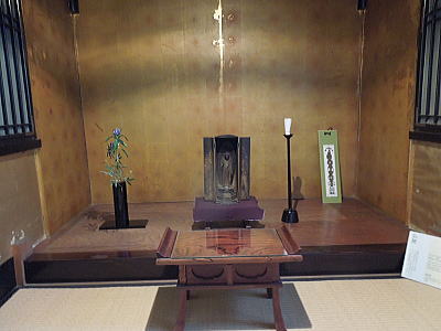 | 15畳のお部屋に金箔の仏間 天井には豪華な天井画 |