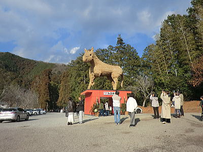 地元の上加瀬老人会の有志が、古代米保存会が提供した藁を使い大勢の参拝客に同神社を訪れて貰おうと