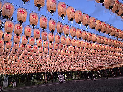 姫路城近く道路横に、新年万燈祭り提灯に魅せられて護国神社(姫路市本町118)へと・・・ |